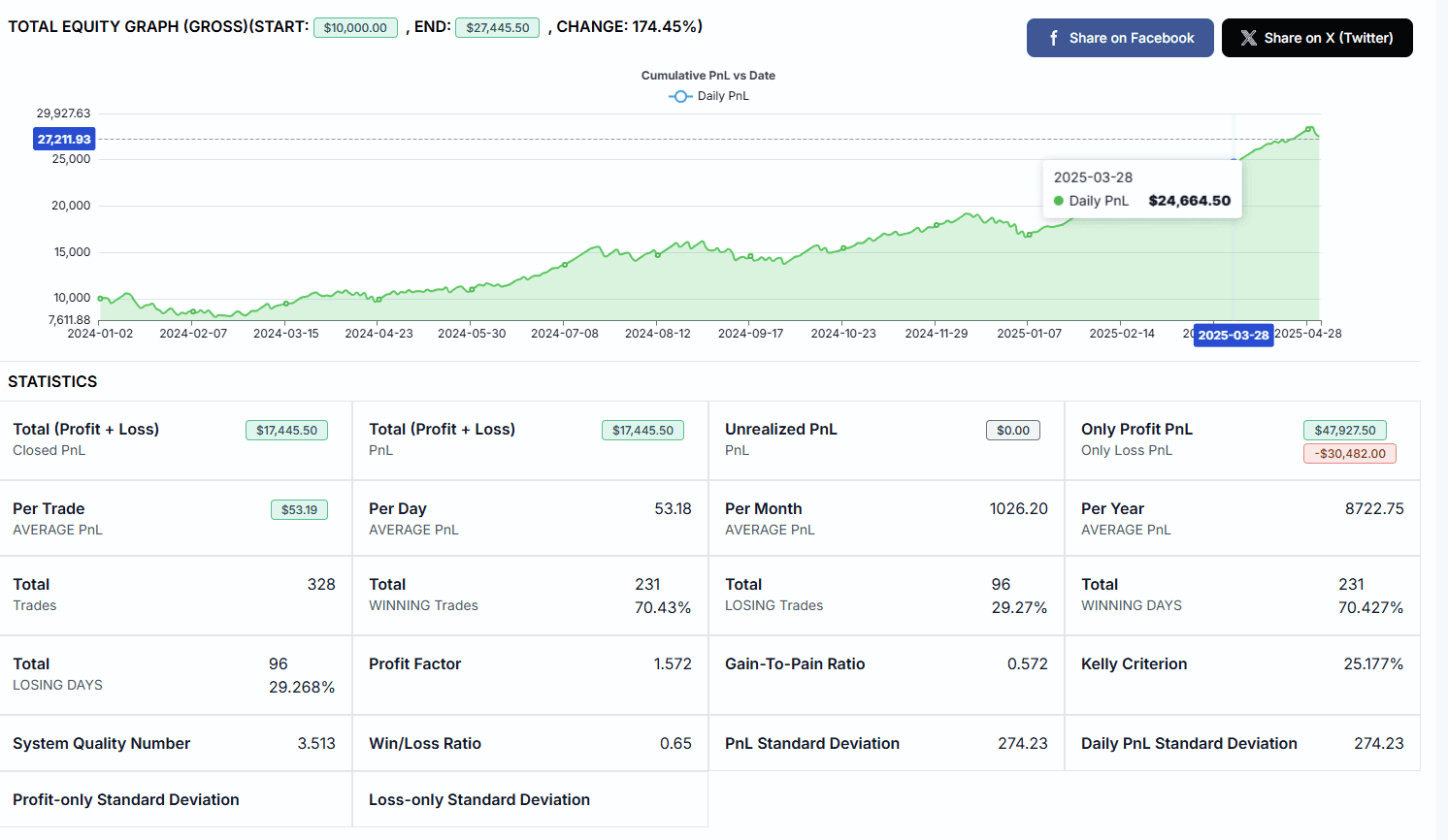 70.43% win rate, 1.572 profit factor, ZERO leverage